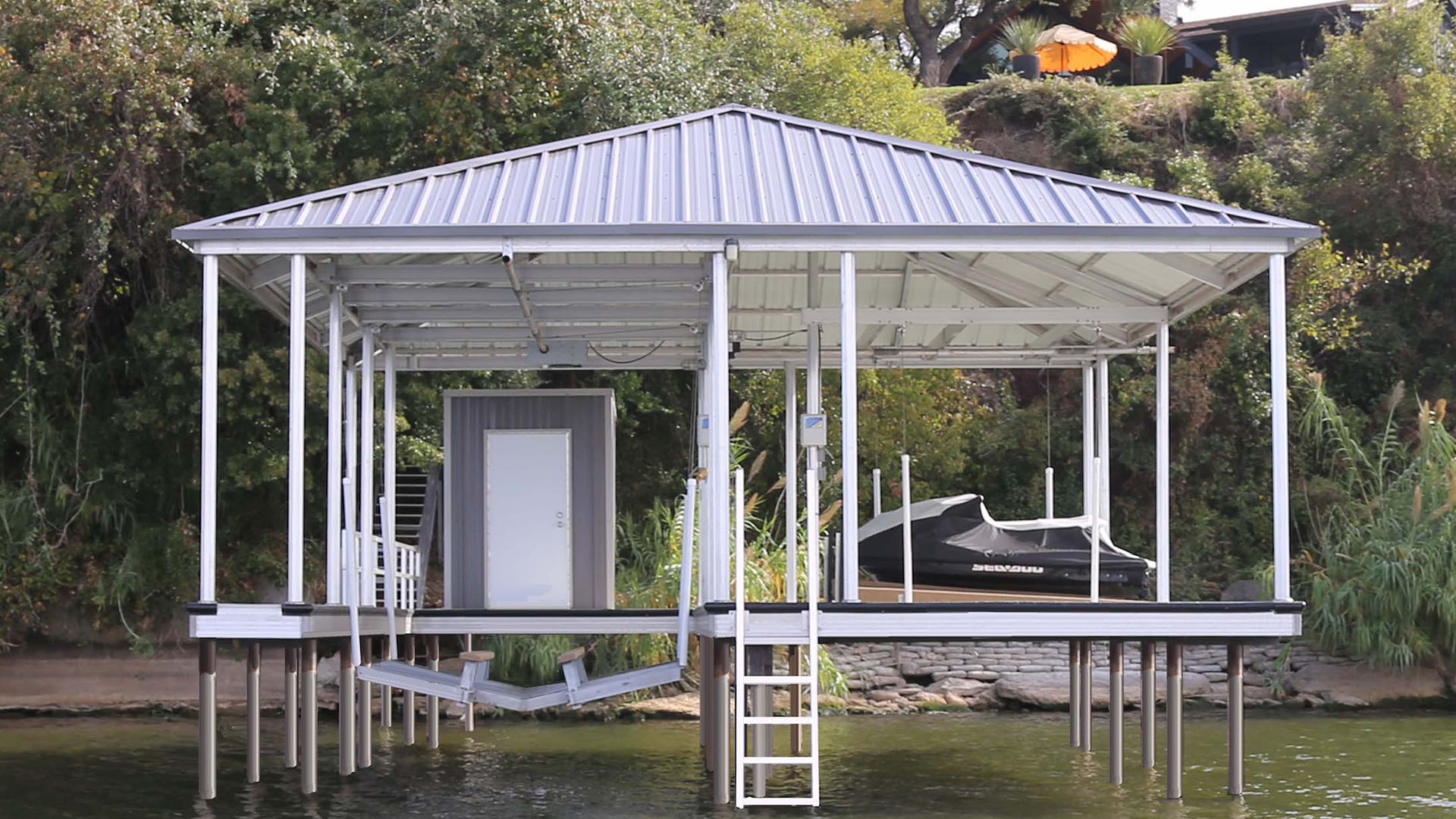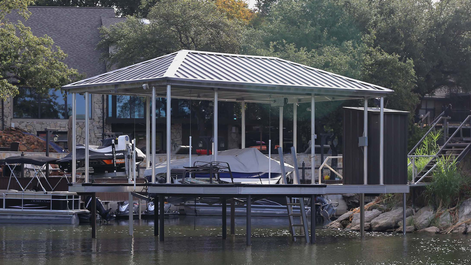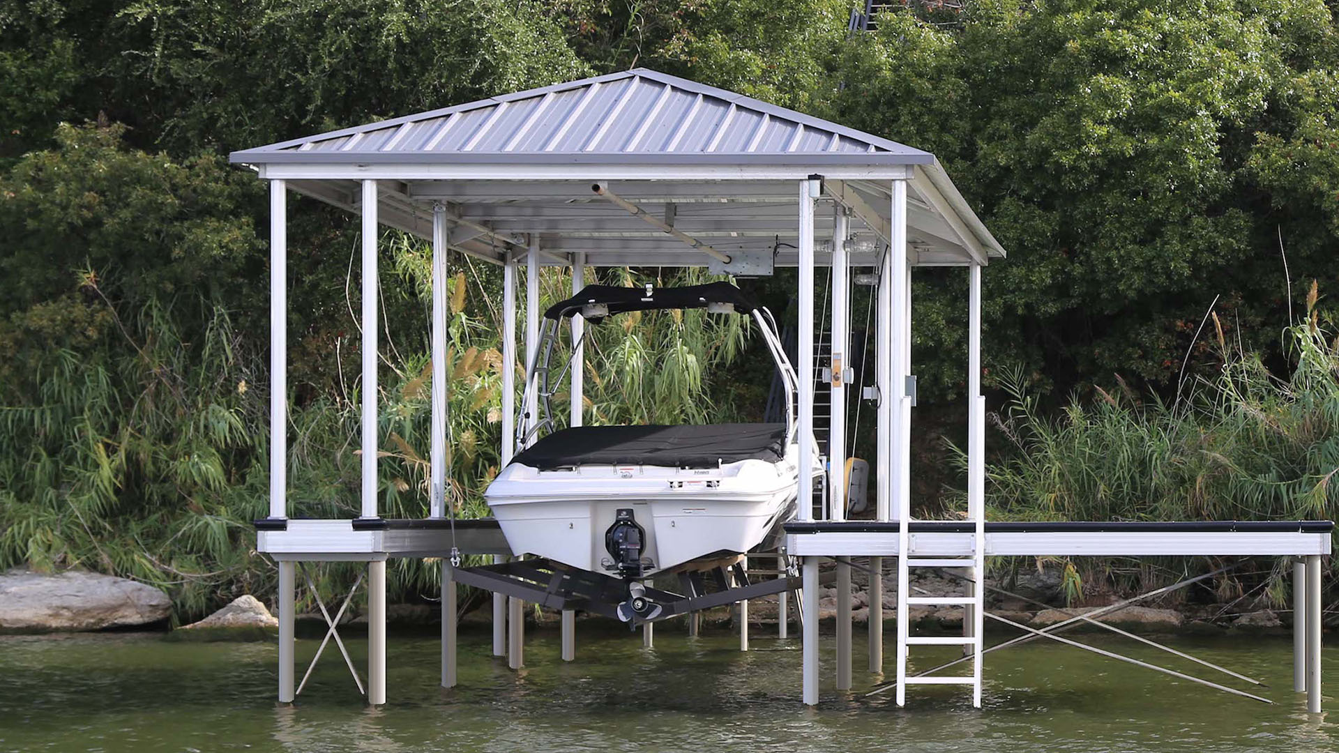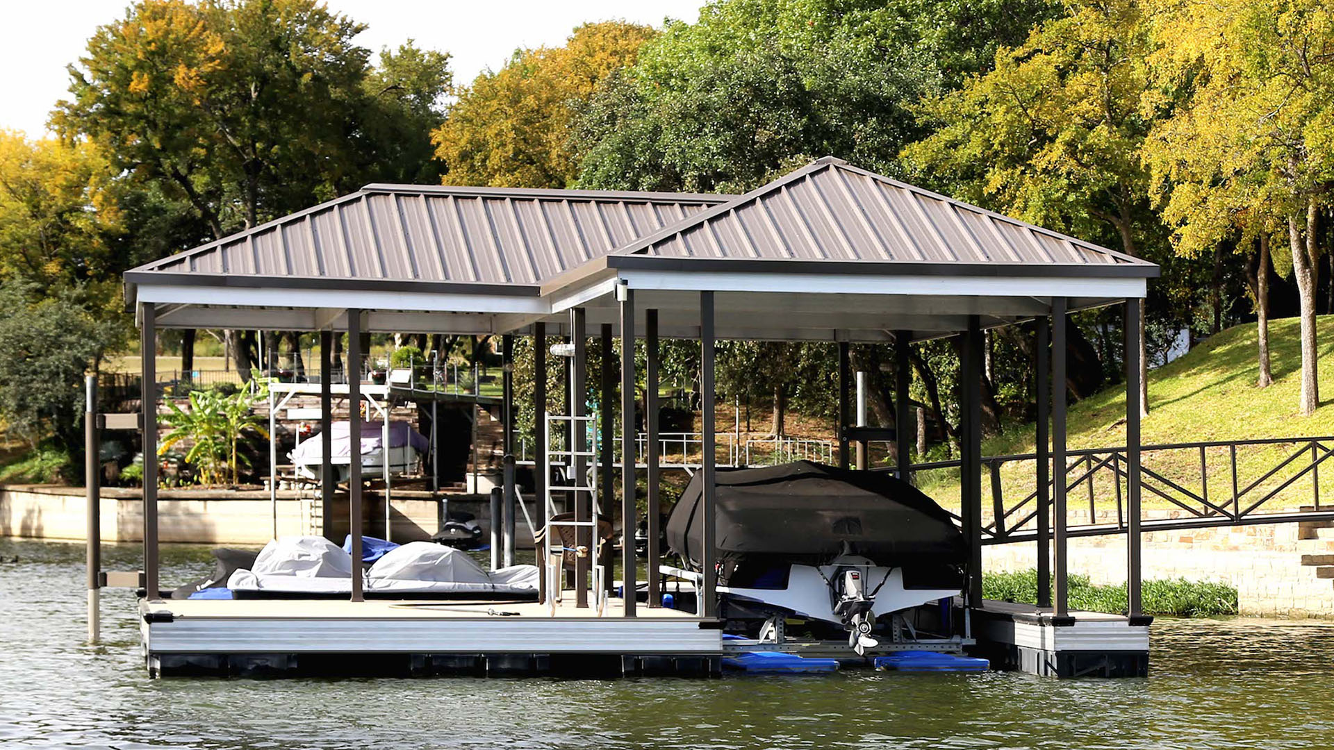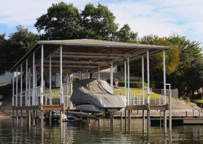 Extremely durable. We use high-quality, weather-resistant materials like corrosion-resistant aluminum, premium decking, and reinforced roofing panels. This ensures your dock can withstand harsh sun, heavy rain, strong winds, and fluctuating water levels.