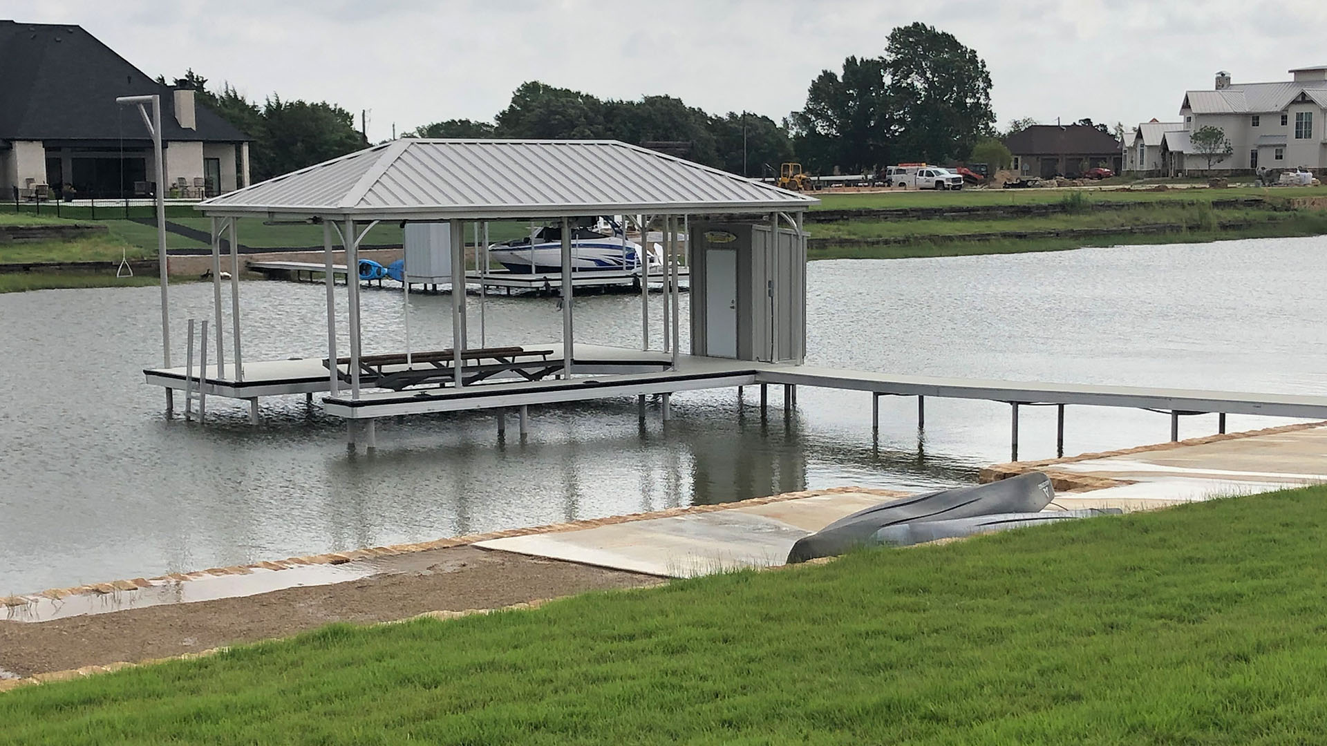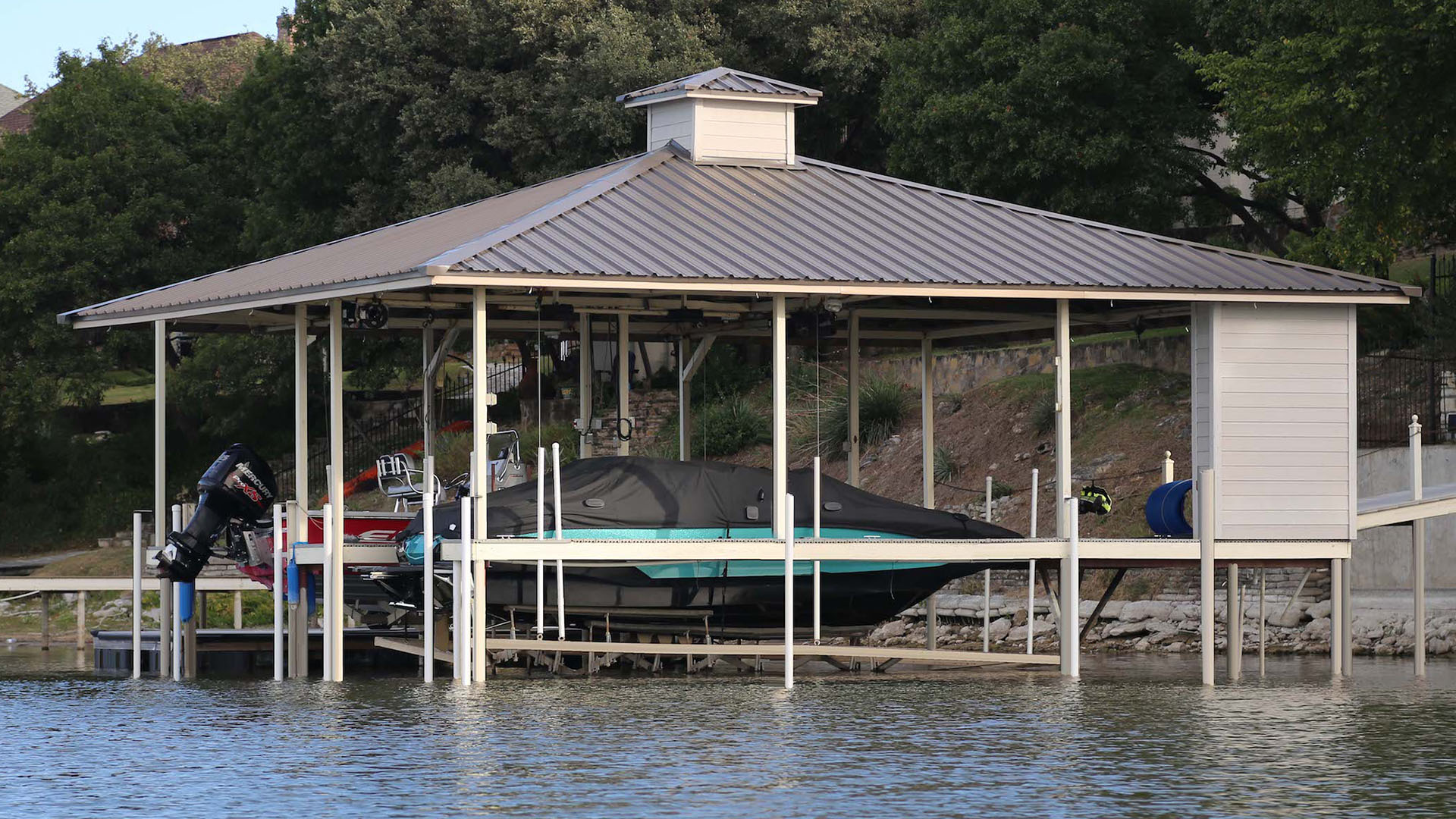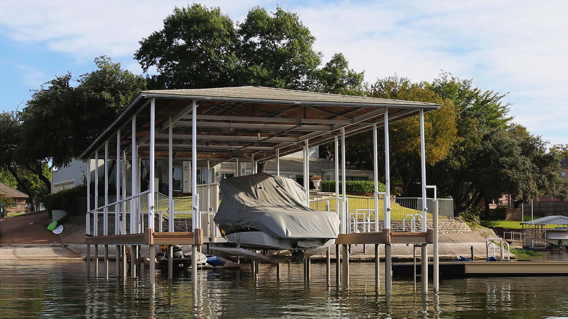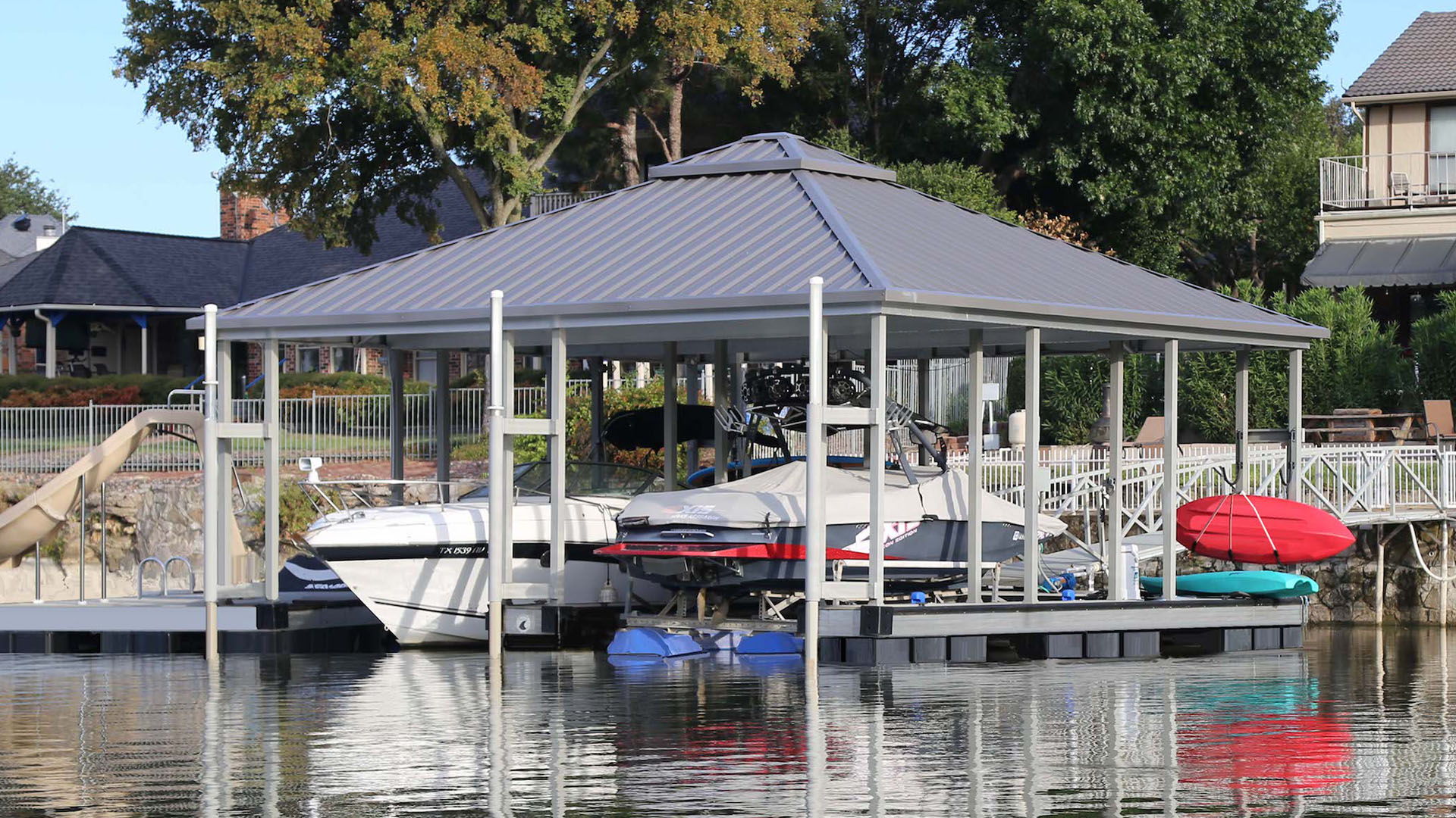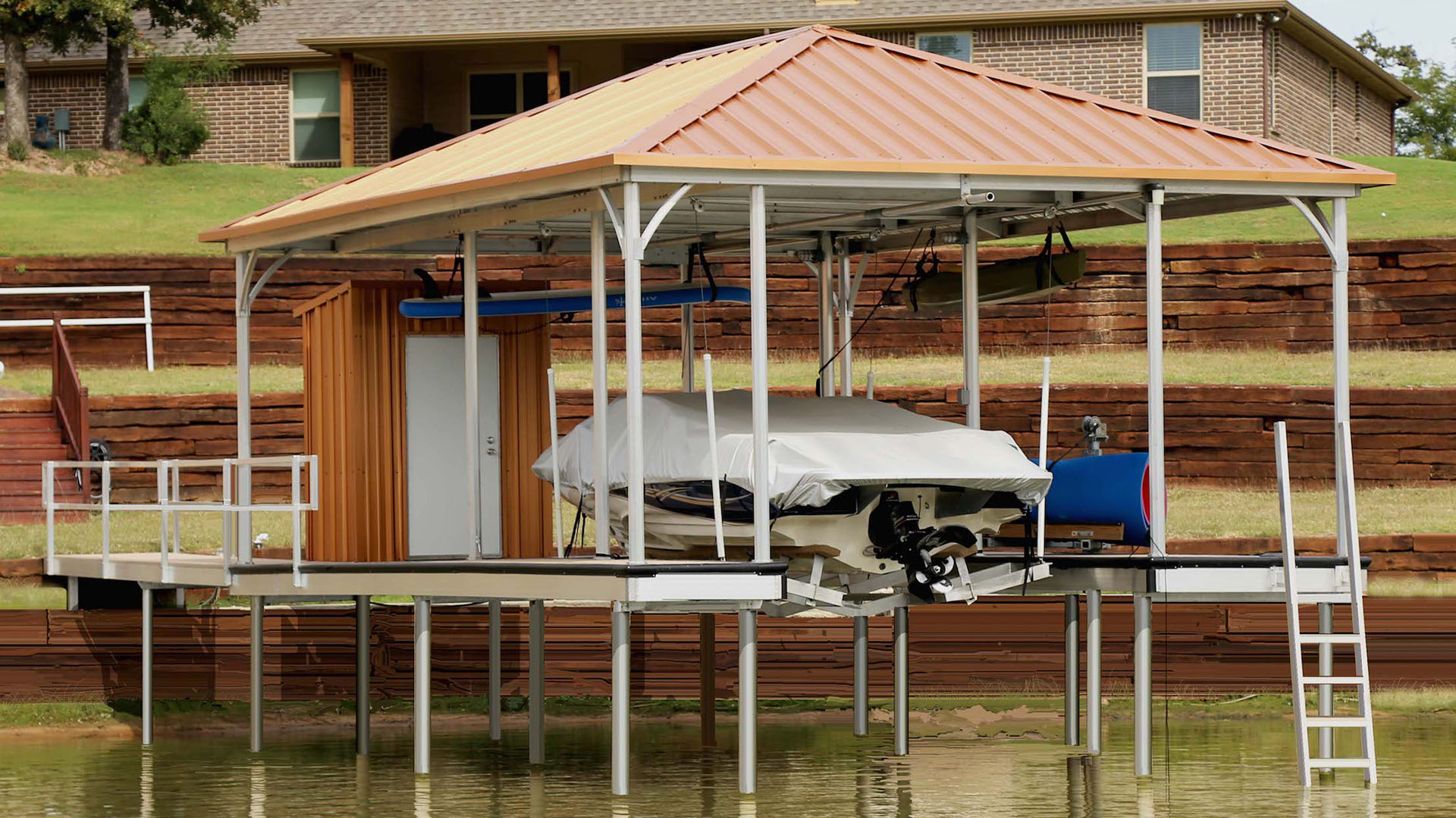 Extremely durable. We use high-quality, weather-resistant materials like corrosion-resistant aluminum, premium decking, and reinforced roofing panels. This ensures your dock can withstand harsh sun, heavy rain, strong winds, and fluctuating water levels.
