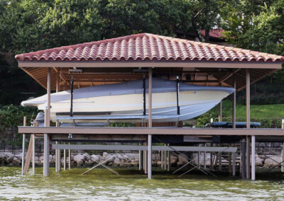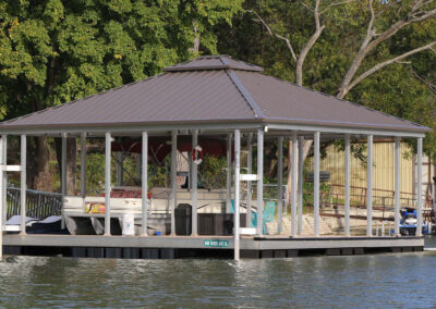 Hip roof docks are not only aesthetically pleasing but also highly functional. Their sloped design offers better wind resistance compared to traditional gable roofs and provides more shade and protection for your dock and boat.